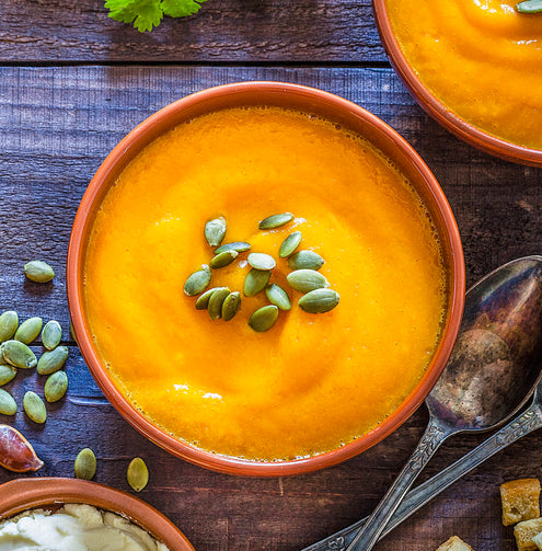 A thick, creamy soup made with fresh pumpkin puree, cream, and spices. Container is 32oz.