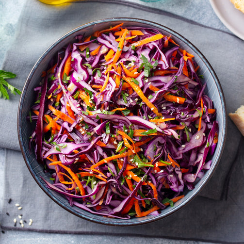 A healthy blend of freshly shredded red cabbage, carrots, mayonnaise, and spices that adds color and flavor to any meal.