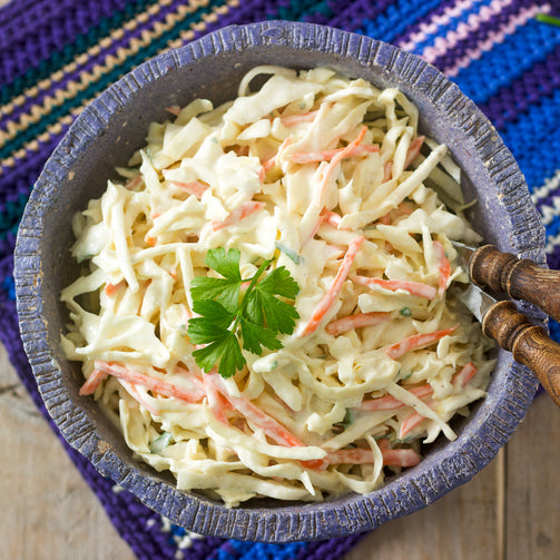 This famous homemade salad is made with fresh shredded cabbage and chopped onions dressed in a tangy vinegar and mayonnaise dressing. An tasty addition to any meal.